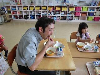 お、給食当番指導中の教頭先生とは鏡の関係になりますね。