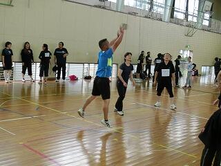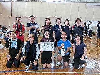 かなりの人数が参加しておられる中、当初、緊張も手伝い、我がさのっちチームは体の動きが固めでした。結果、第一試合のチームに2セットとられ、もう、優勝の芽はなくなったものと皆、思っておりました。