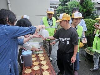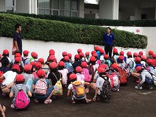 まずは、ボランティアの皆さんに大声で元気よくあいさつ!