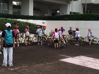 みんなの祈りが届いて、サイクリングができます。みんなががんばったからです!気を付けて楽しんでね。という説明が聞こえてくるような、オリエンテーリング。子どもたちは、相当にお疲れモードですね。