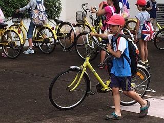 さあ、いよいよ自転車に乗車、みなサイズはあっているかな?