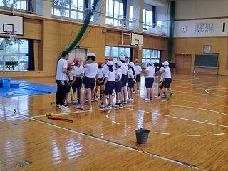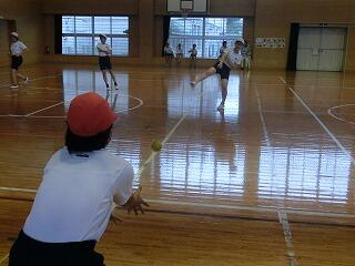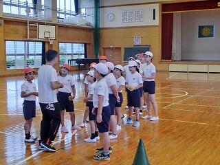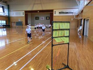 えー、と騒ぐ子どもたちへ5・4・6年合同のボール運動の贈り物。