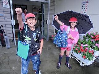 がんばっていってらっしゃい!(いつまでもさのっこ4年生手を振ってくれました。)