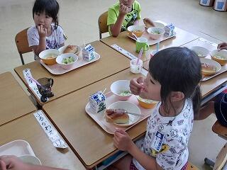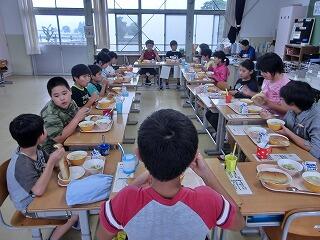 5・6年の合同学習も半日が過ぎ、楽しみな給食。