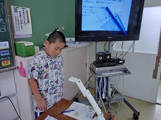 ぼくはOHC(実物投影機)を使います。お、このクラスもう、キテルナ!スゴイ!
