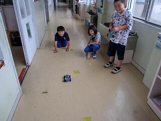 理科、電気の働き。おお、競争だ!一階には誰も居ない!