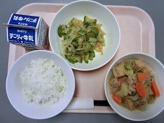 今日の給食も美味しかったね。温かい、野菜一杯のにくじゃが!お袋の味!