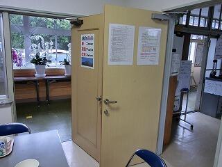 校長室のドア、いつも開けています。かさなるとこうなり、中に少しの空洞ができます。