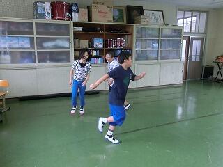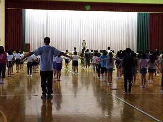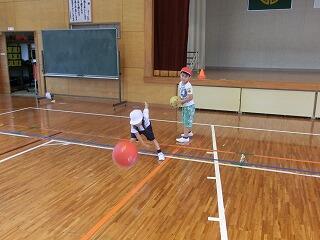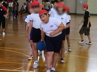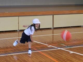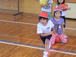 さて、プール開きを逃したさのっこ、体育館で体育をしていますよ。