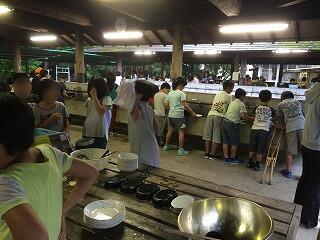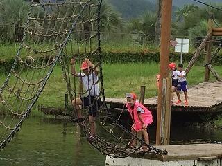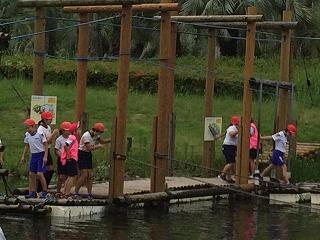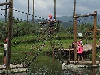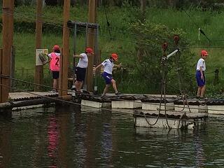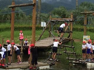 さあ、2日目。雨模様です。サイクリングは明日に延期になりました。しかし、楽しみな野外フィールドアスレチックは無理だなあ、と気をもんでおりました。