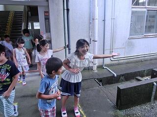 校長:皆さんの願いが伝わりました。宿泊学習奇跡の雨上がりです!よかったね!