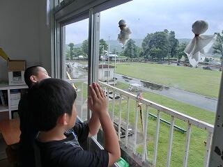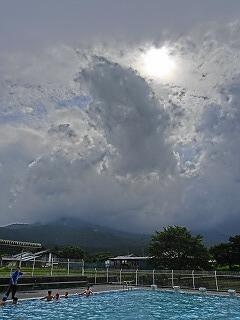追伸 プール開き後 しばらくすると、再度、厚い雨雲到来。大雨になりました。本当に、6時間目だけの奇跡の晴れ間でした。こんなことが叶うさのっ子って?