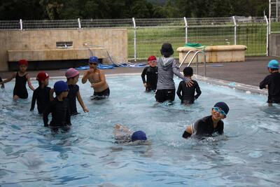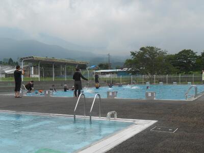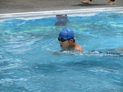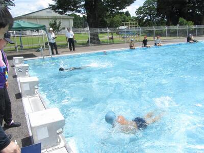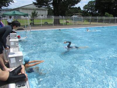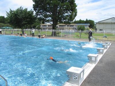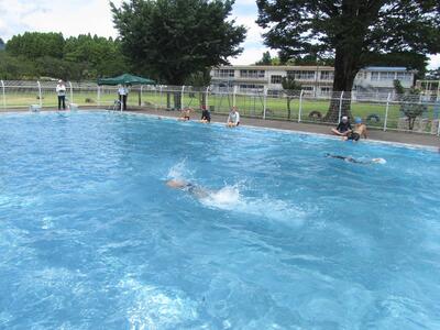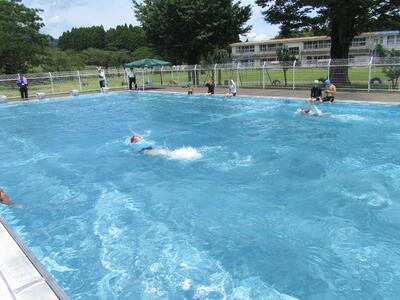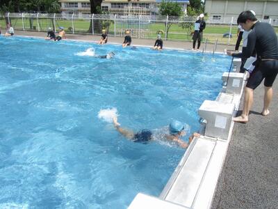 7月18日(火)に3年~6年生の『水泳披露会』を行いました。25m自由形、50m自由形、25m平泳ぎ、50m平泳ぎ、100mリレーを披露しました。タイムや距離を測りましたが、これまでの練習の甲斐あって、みんなかなり上達していました。応援に来てくださった保護者の皆様、ありがとうございました。1・2年生は、披露会はありませんでしたが、だいぶ水に慣れてきたようでした。イルカさんグループの中にはケノビとバタ足で小プールの横を泳ぎ切る児童もいました。