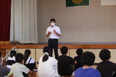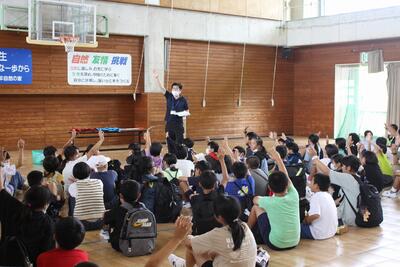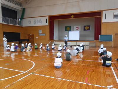 9月1日に地震を想定した避難訓練を行いました。今回は、「地震が起きたときの身を守る行動を確認し、先生の指示に従って落ち着いて避難しよう」をめあてとして、①放送による緊急地震速報が流れたときの安全確保 ②口頭による負傷状況の伝達と担架搬送 ③雨天時を想定した体育館への避難 ④「緊急地震速報が流れたら、あなたならどうしますか?」の映像視聴を行いました。校長先生から「みんな真剣に落ち着いて訓練をすることができました。」という講評がありました。地震はいつどこで発生するか分かりません。今回の訓練が大切な命を守る行動につながるよう願っています。