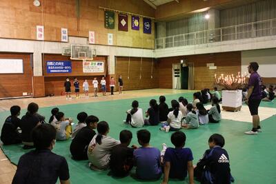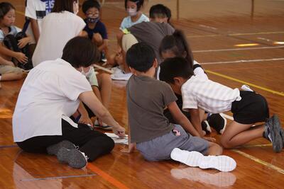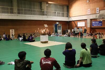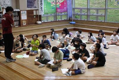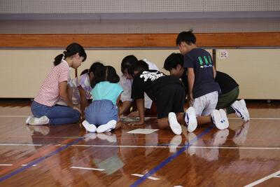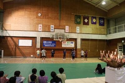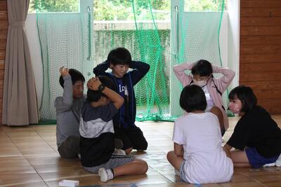 6/29(木)~30(金)、御池青少年自然の家で高原町内の4つの小学校(狭野小、高原小、広原小、後川内小)の5年生、74名が合同宿泊学習を行いました。1日目は、防災かるたと屋内追跡ハイキング、キャンドルファイヤーを行いました。「規律」「協同」「友愛」「奉仕」を意識して、友情を深める行動ができていました。