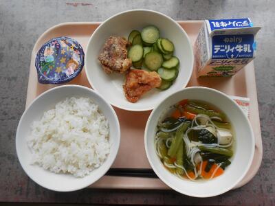 ★ ちなみに、今日の給食は「七夕汁、唐揚げ、きゅうりの中華付け、麦ごはん、牛乳、七夕ゼリー」でした。すごく美味しかったです!!
