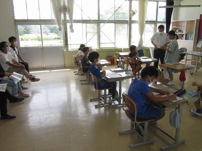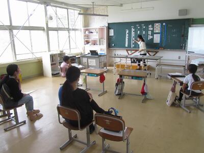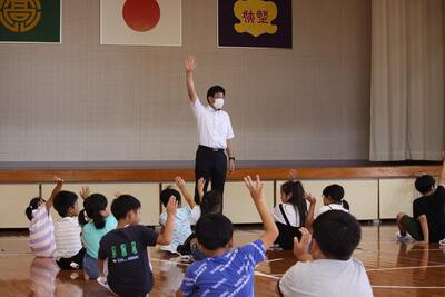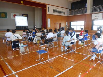 8月1日(火)は登校日でした。夏休みも10日が過ぎました。久しぶりに登校した児童は、元気そうで、釣りやプール、買い物等に行ったこと、本立てを作ったり少年団の試合があったりと楽しい思い出がいっぱいある様子でした。全校集会では、校長先生から二つのお話がありました。一つは、夏休みを計画的に過ごして楽しく充実したものにしてほしいということ。もう一つは、8月は平和について考える機会があるので、ニュースやテレビ番組等を通じて戦争や平和について理解を深めてほしいということでした。担当の先生からは、引き続き安全面に気を付けて夏休みを過ごしてほしいというお話がありました。残り27日間の夏休み、28名の児童が健康・安全に心掛けて、充実した夏休みを送ってくれることを願っています。
