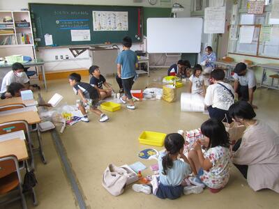 37日間の夏休みを終えて、8月28日(月)から1学期後半の学校がスターしました。この日、夏休みの宿題や作品を手に、全校児童28名が元気に登校しました。全校集会では、校長先生からは、「新しい目標を立てて、具体的に取り組んでいきましょう。」というお話がありました。担当の先生からは、8・9月の生活目標についてのお話がありました。また、7月に行われた水泳記録会の表彰、登校班に分かれての危険箇所等の確認も行われました。