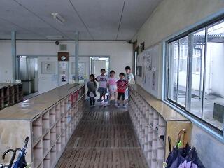 教室にいても立ってもおられず、心配で児童玄関をのぞき込むさのっこさん。