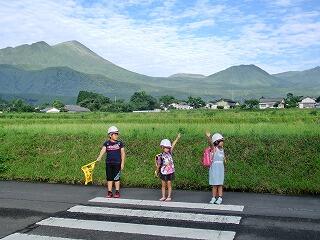 おもしろいのは、子どもたちの反応。高学年になるとさすがに、景色には無反応になりますが、ある一年生がこういった!「校長先生、あのね、お山がとっても近いよ!」そうそう、その感性が大事だよ、さのっこ。