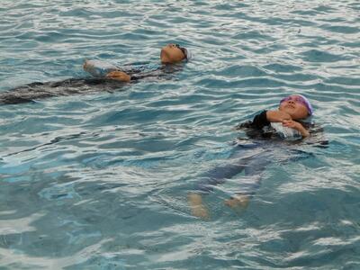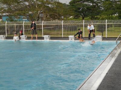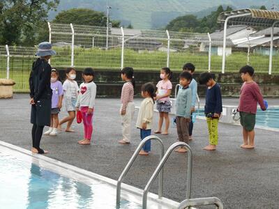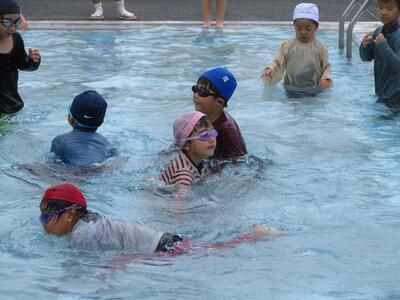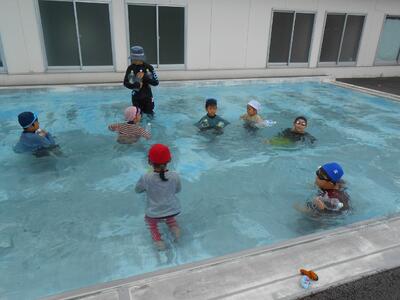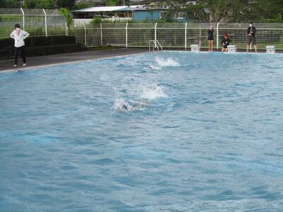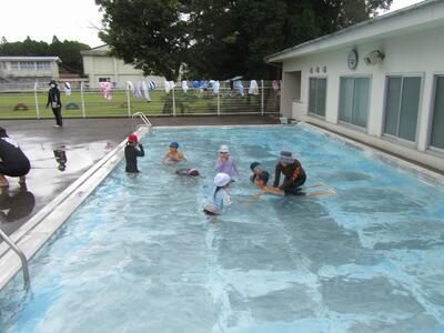 夏休みを前に衣服を着たままプールに入る『着衣泳』を行いました。着衣のまま水に入ると体が重たく感じるられることや溺れそうになったときはペットボトルなどにつかまって呼吸を確保して救助を待つとよいことなどを学びました。