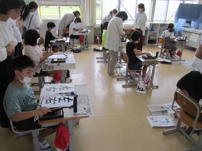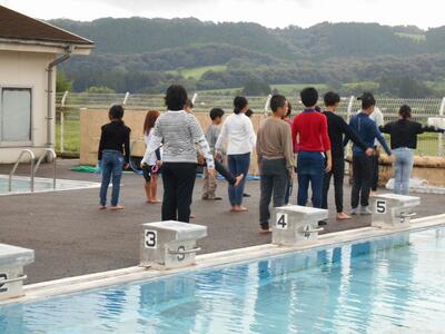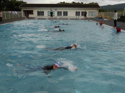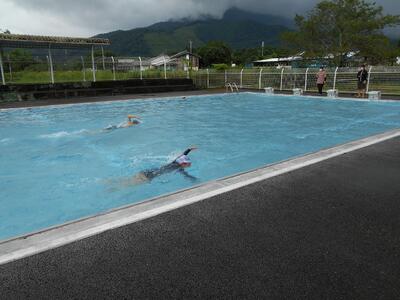 当初は参観日で『水泳披露会』をする予定でしたが、新型コロナ感染拡大防止のため『記録会』に変更になりました。3~6年生は、各自のレベルに応じた種目で挑戦しました。練習の成果もあって、距離が伸びたりタイムが縮まったりして成長を実感していました。1~2年生も水に慣れてクラゲ浮きやケノビやバタ足が上手になりました。