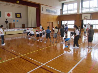全校集会では、校長先生からは「1学期後半は運動会の練習も始まります。まずは、授業でのけじめをしっかりできるように心がけましょう。」というお話がありました。また、8・9月の生活目標である「いつでもどこでも立腰の姿勢をつくろう」の実現に向けて、担当の先生から【しせいれんじゃー】「グー」「ペタ」「ピン」のお話がありました。しっかりした姿勢ができると、①集中力アップ! ②スタイルアップ! ③成績アップ! につながるということですので、早速今日から心がけたいものです。