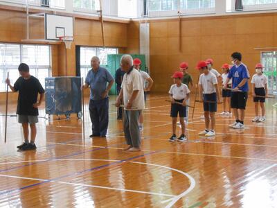 9月26日に5・6年生が、地域の方に指導していただきながら狭野の棒踊りを練習しました。10月15日の運動会でしっかりと披露できるようにこれからも練習を頑張ります。
