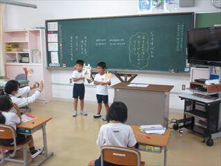 9月30日に第2回ビブリオバトルが開催されました。2回目なので、どの子どもたちも、あらすじや読んでほしい場面等を声の強弱や表情、間などを意識して上手に伝えることができました。今回のチャンプは、学習発表会(11月8日)で発表を行います。第3ビブリオバトルは1月20日に予定されています。楽しみです。