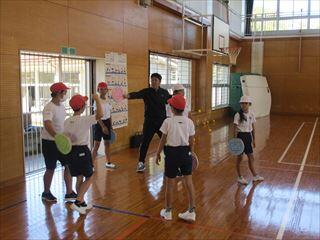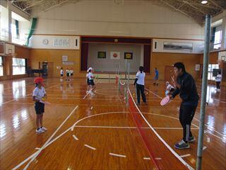 体育実技サポーターによる第2回目のテニスの授業が行われました。体の前で打つこと、バウンドさせて打つこと等を、ゲームを通して楽しみながら学習しました。第1回目よりラリーが続くようになりました。
