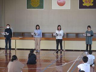1・2年、3・4年、5年・6年のそれぞれのクラス発表、ビブリオバトルのチャンピオンの発表、全校群読と盛りだくさんでした。みんな表情豊かに、大きな声で、そして、堂々とした発表ができました。素晴らしい発表でした。