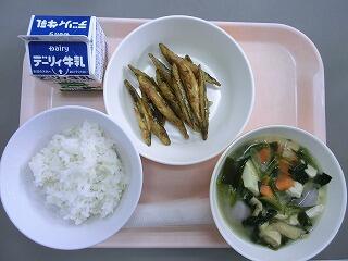 6年生は本日も2名がお休みで、きびなごを山盛りでほおばっていました。