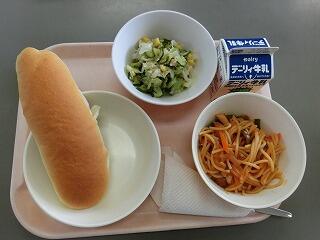 美しい、給食の定番ですね。スパゲティナポリタン!+パン!