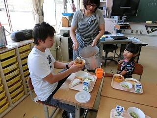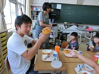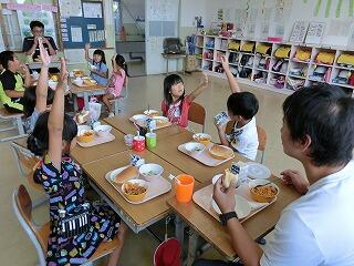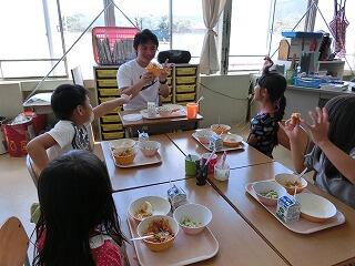 給食時間の先生はたくさん楽しい話しをしてくれるのです!