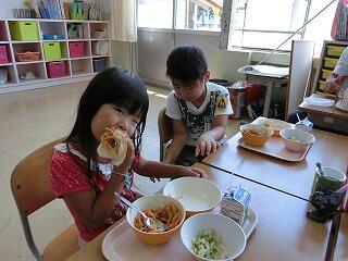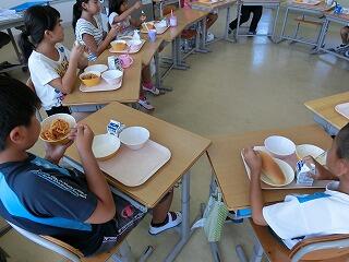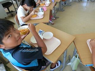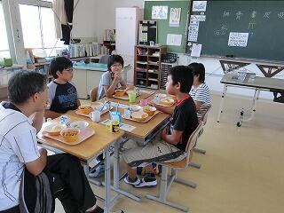 6年生、いつもいつも安定して楽しく仲良く食べています。