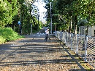 道路には台風で吹き荒れた名残である葉っぱが散乱。