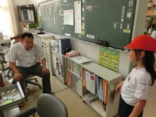 ある日、教頭先生がさのっこの訪問に対応しておられました。
