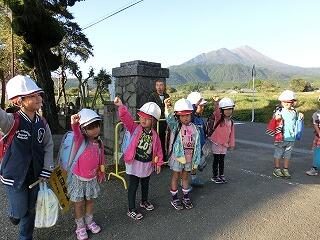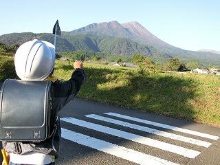 ほら、あそこ、高千穂峰の下あたり・・・。
