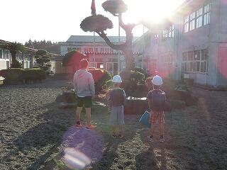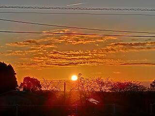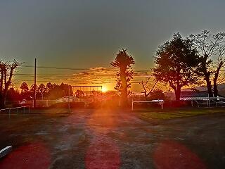 朝、日の出が遅くなり、校長の登校と日の出が重なるようになってきました。