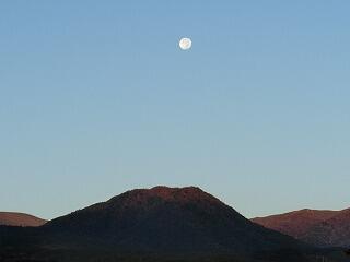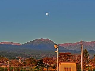 きれいなきれいな満月が、朝焼けに浮かぶ姿はなんとも幻想的です。