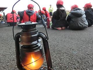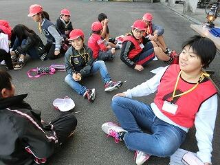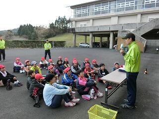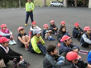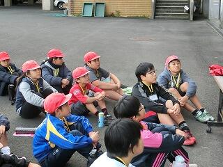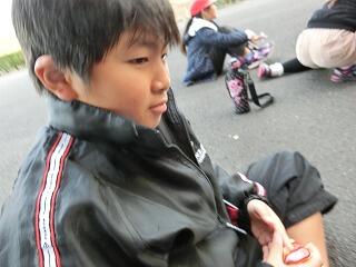 ファイティングを見守る、あいさつお兄さんも絵になる。朝の風景。