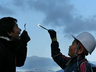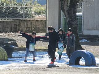 4年生が冬探検していますよ・・・。あの4年生だ、きっとユニークなことが起こるぞ・・・。校長のいつもの執拗な後追いが始まりました。