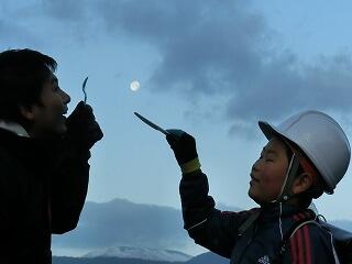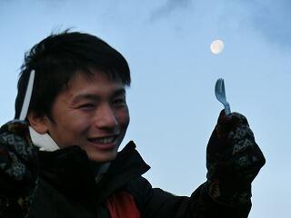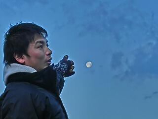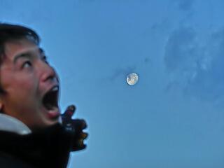 「月を捕まえる」。なかなか撮れる写真ではないですね。