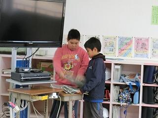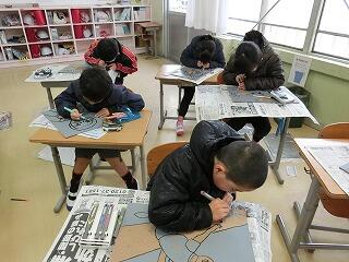 気配りさのっこ、みんなの新聞を畳んでいる友だちをサポート。