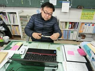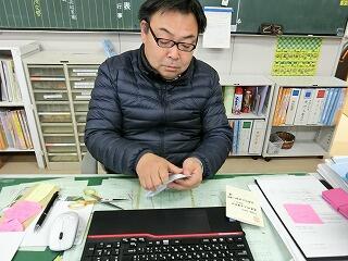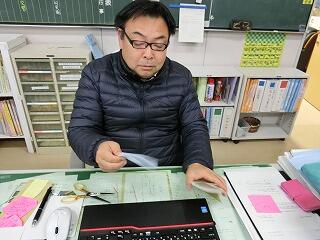 校長が、認証証と心ばかりの記念品の準備を始めます。
