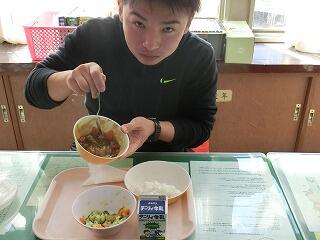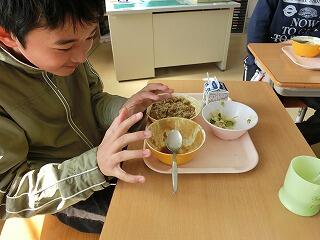大盛り先生昼食中。
