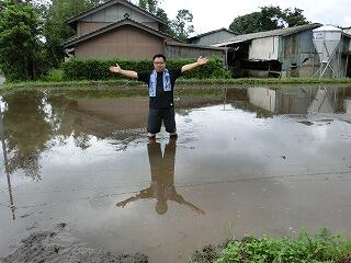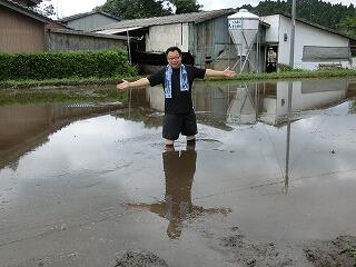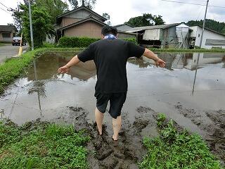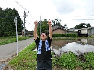 私も、田んぼに飛び込みます。イェイ!