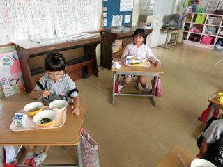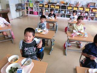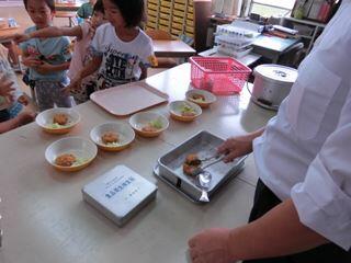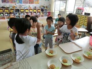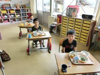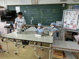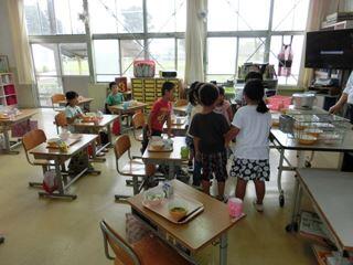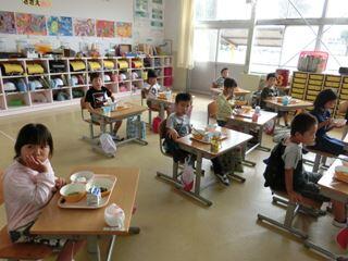 給食時間・・・1年生教室がやけにさわがしい。