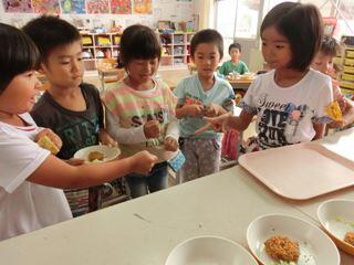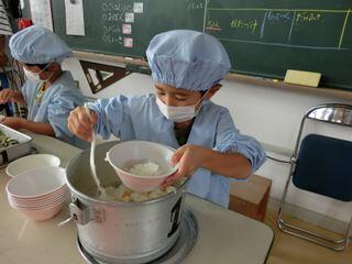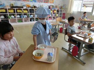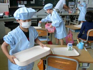 何より、一年生が楽しみにしていたのが、「給食当番」!