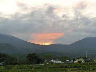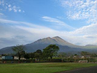 出迎える高千穂峰の風景。